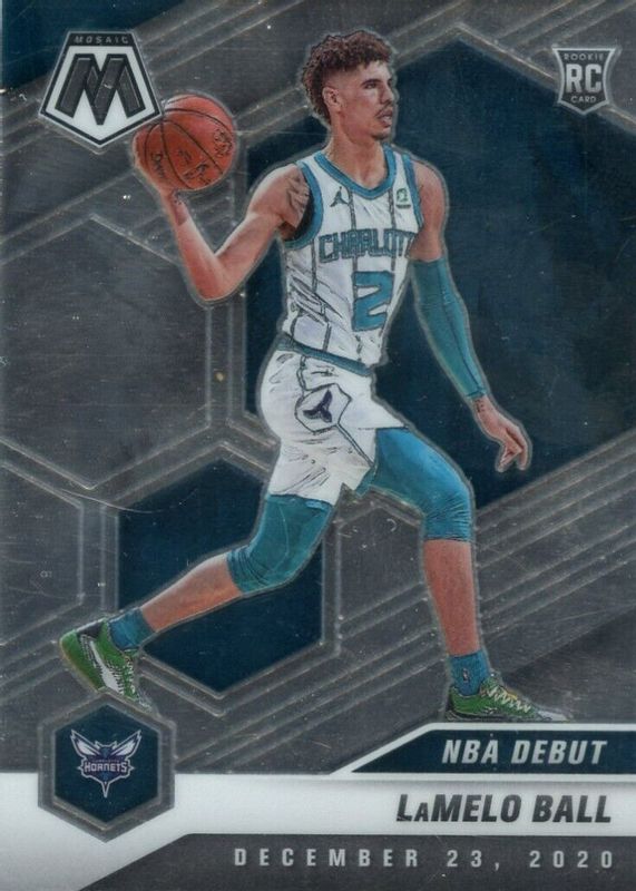 The LaMelo Ball 2020 Mosaic #262 NBA Debut Rookie card in Raw condition has moved up $0.34 (+34.0%) in the last 30 days and was last sold for $1.34 .