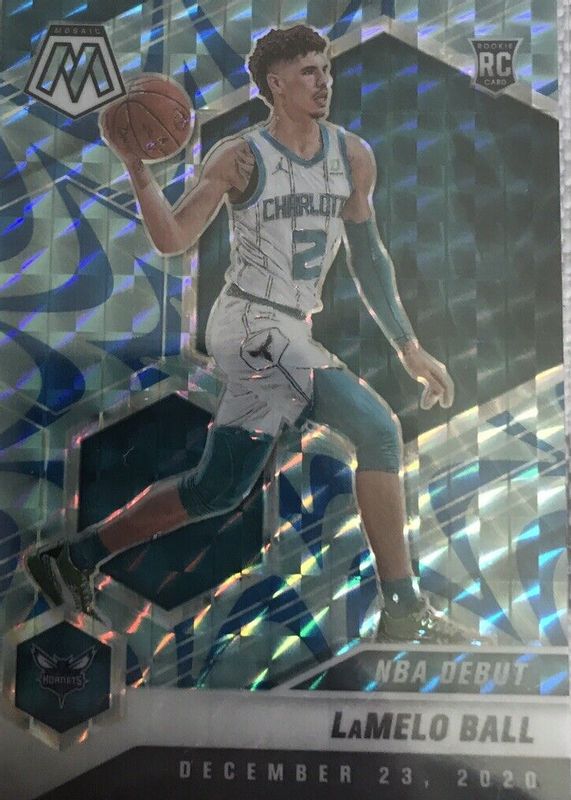 The LaMelo Ball 2020 Mosaic #262 NBA Debut - Choice Peacock /(SSP) Rookie card in Raw condition has not changed in price in the last 30 days and was last sold for $9.99 .