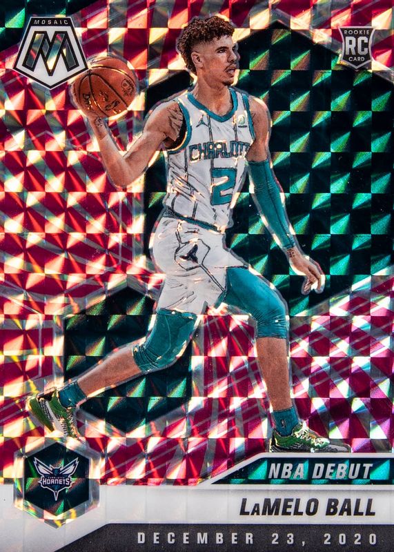 The LaMelo Ball 2020 Mosaic #262 NBA Debut - FOTL Pink Swirl /11 Rookie card in Raw condition has not changed in price in the last 30 days and was last sold for $299.99 .