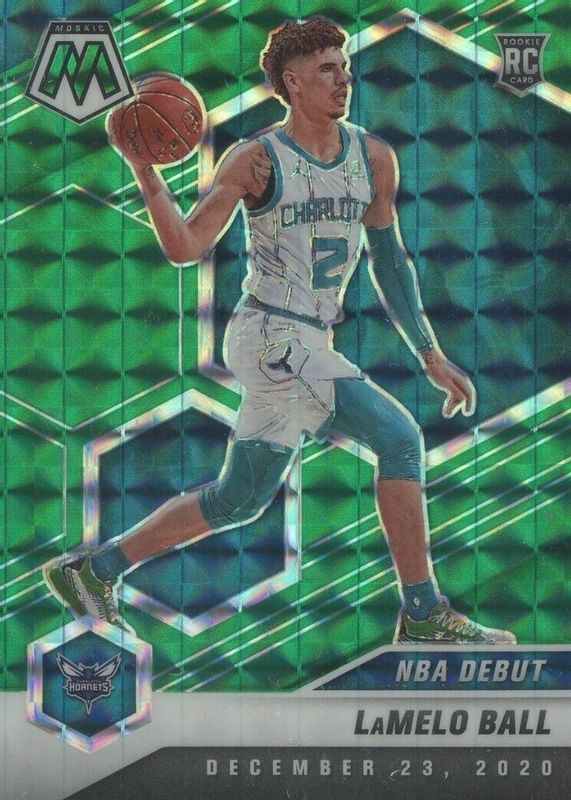 The LaMelo Ball 2020 Mosaic #262 NBA Debut - Green Rookie card in Raw condition has moved down -$0.02 (-0.6%) in the last 30 days and was last sold for $3.25 .