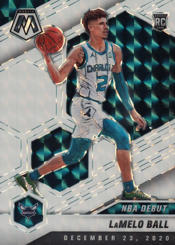 The LaMelo Ball 2020 Mosaic #262 NBA Debut - White /25 Rookie card in Raw condition has not changed in price in the last 30 days and was last sold for $102.50 .