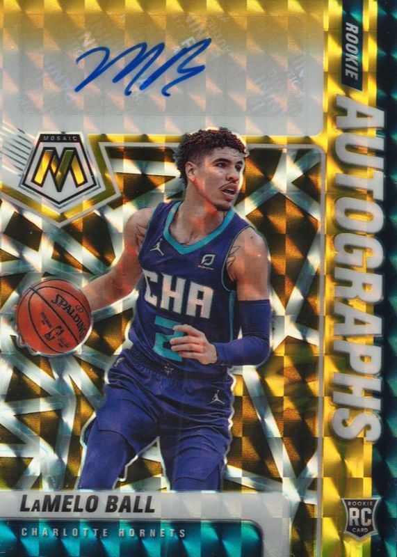 Auctions Ending Soon for LaMelo Ball 2020 Mosaic #RA-LBL Rookie Autographs - Gold /10 PSA 9