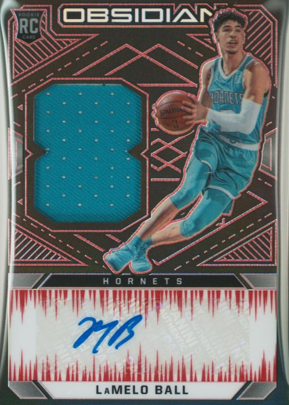 Auctions Ending Soon for LaMelo Ball 2020 Obsidian #210 Rookie Jersey Autographs - Electric Etch Red /5 RAW