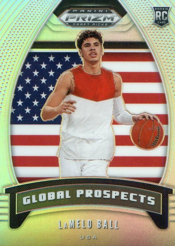The LaMelo Ball 2020 Prizm Draft Picks #98 Global Prospects - Silver Rookie card in Raw condition has moved down -$1.00 (-50.3%) in the last 30 days and was last sold for $0.99 .