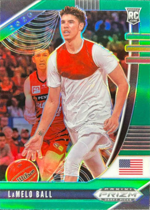 The LaMelo Ball 2020 Prizm Draft Picks #43 Green Rookie card is 1 of 160 LaMelo Ball's card variations in the 2020 Prizm Draft Picks set being tracked by Sports Card Investor, including #43 Base, #83 Base, #98 Base, #3 Base, and #43 Base (Secondary Photo).