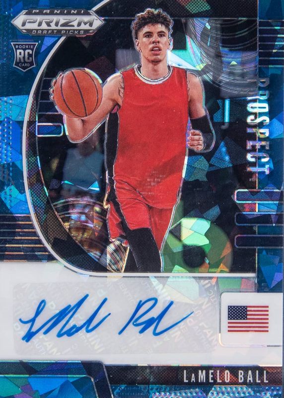 LaMelo Ball 2020 Prizm Draft Picks #PA-LB Prospect Autographs - Blue Ice /75 Rookie RAW Price Guide