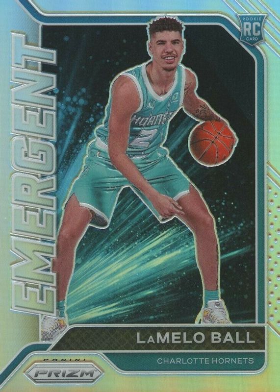 The LaMelo Ball 2020 Prizm #23 Emergent - Silver Rookie card in Raw condition has moved up $2.25 (+225%) in the last 30 days and was last sold for $3.25 .