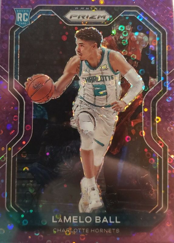 2020-21 PRIZM LAMELO BALL RC #278 FAST BREAK PURPLE DISCO SP #/75 HORNETS NICE!