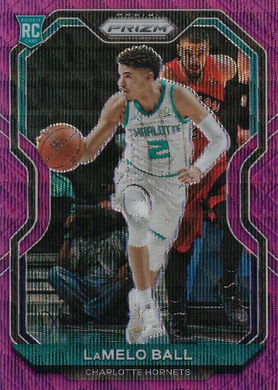LAMELO BALL 2020-21 PANINI PRIZM ROOKIE PURPLE WAVE HORNETS RC CENTRED!!