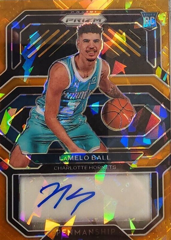 2020-21 Prizm Lamelo Ball orange Cracked ice Penmanship Auto