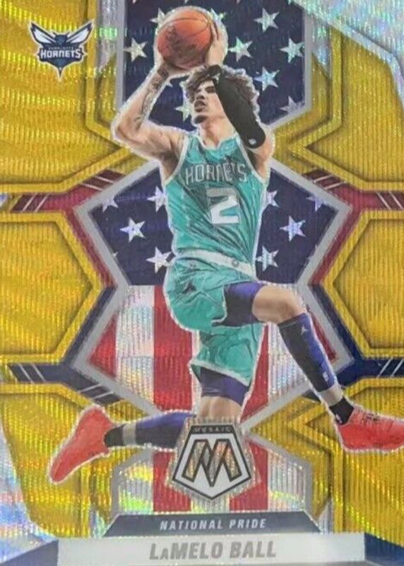 The LaMelo Ball 2021 Mosaic #251 National Pride - Gold Wave card in Raw condition has not changed in price in the last 30 days and was last sold for $6.50 .