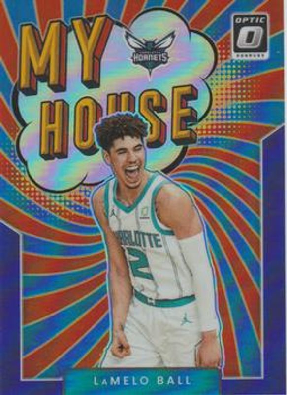 The LaMelo Ball 2021 Optic #8 My House - Purple card is 1 of 88 LaMelo Ball's card variations in the 2021 Optic set being tracked by Sports Card Investor, including Base, Blue Pulsar, Blue Velocity, Checkerboard, and Choice.