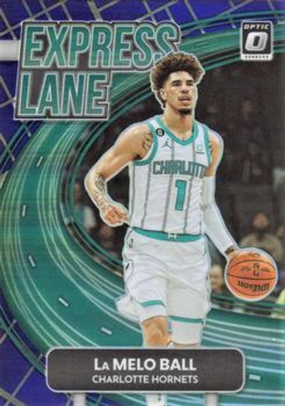 The LaMelo Ball 2022 Optic #11 Express Lane - Purple card is 1 of 119 LaMelo Ball's card variations in the 2022 Optic set being tracked by Sports Card Investor, including Base, Checkerboard, Choice Red & Green, Fast Break, and Green Shock.