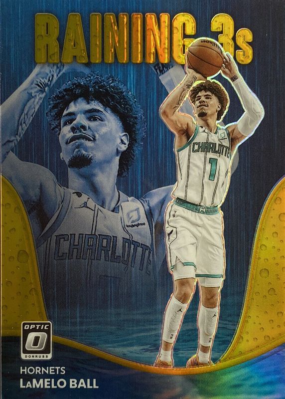 2022-23 Donruss Optic Lamelo Ball Raining 3’s Gold 10/10 Charlotte hornets