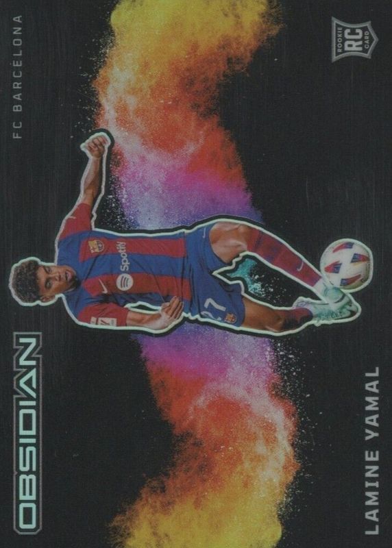 The Lamine Yamal 2023 Obsidian #8 Black Color Blast /(SSP) Rookie card in Raw condition has not changed in price in the last 30 days and was last sold for $2,213.88 .