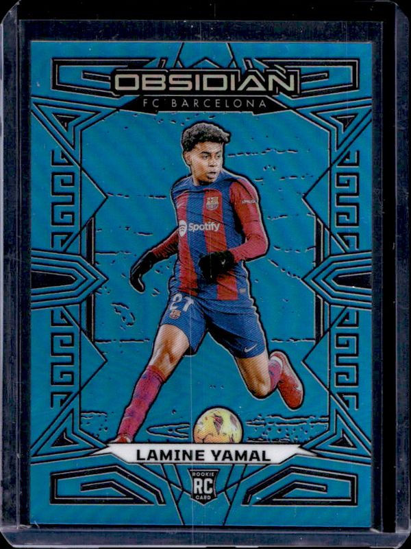 Lamine Yamal 2023 Obsidian #152 Electric Etch Neon Blue Flood /15 Rookie RAW Price Guide