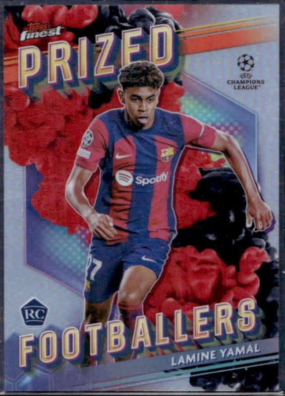 Lamine Yamal 2023 Topps Finest UEFA Club Competitions #PFF-8 Prized Footballers - Fusion Black Red Rookie RAW Price Guide