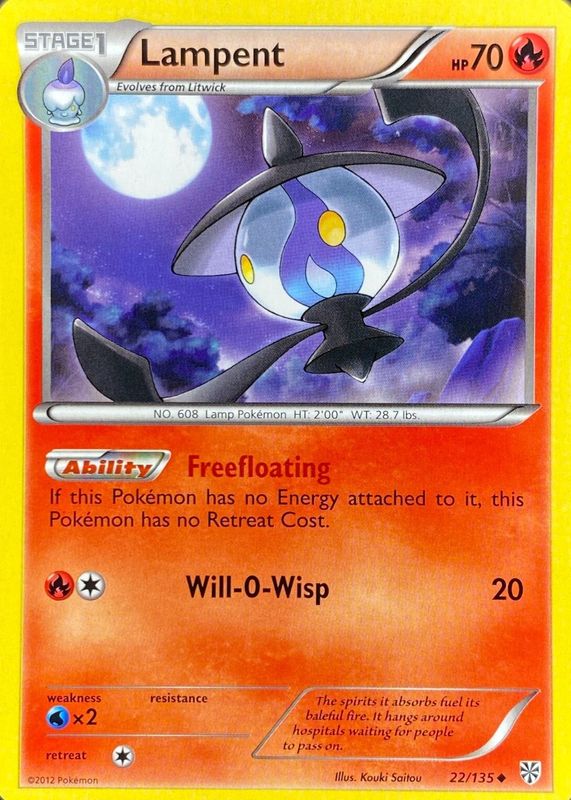 The Lampent 2013 Black & White: Plasma Storm #022/135 Base card in Raw TCG (Lightly Played) condition has not changed in price in the last 30 days and was last sold for $1.55 .