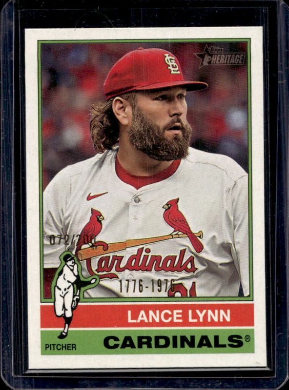 The Lance Lynn 2025 Topps Heritage #318 Bicentennial /200 card is 1 of 24 Lance Lynn's card variations in the 2025 Topps Heritage set being tracked by Sports Card Investor, including Base, Black Border, Dark Blue Border, Dark Green Border, and Dark Yellow Border.