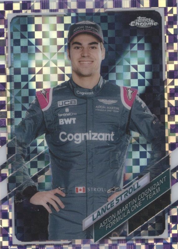 2021 Topps Chrome F1 Lance Stroll Aston Martin Checker Flag Numbered Purple /199