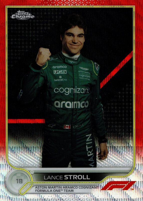 This card is 1 of 35 Lance Stroll's card variations in the 2022 Topps Chrome Formula 1 set being tracked by Sports Card Investor, including Black & White RayWave Refractor, Checker Flag Refractor, Gold & Purple Refractor, Orange & Red Refractor, and Purple & Green Refractor.