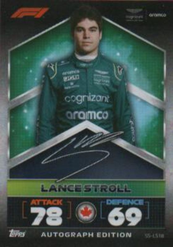 The Lance Stroll 2022 Topps Turbo Attax Formula 1 #SS-LS18 Signatures Style /10 card is 1 of 30 Lance Stroll's card variations in the 2022 Topps Turbo Attax Formula 1 set being tracked by Sports Card Investor, including #259 Base, #72 Base, #71 Base, #70 Base, and #348 Base.