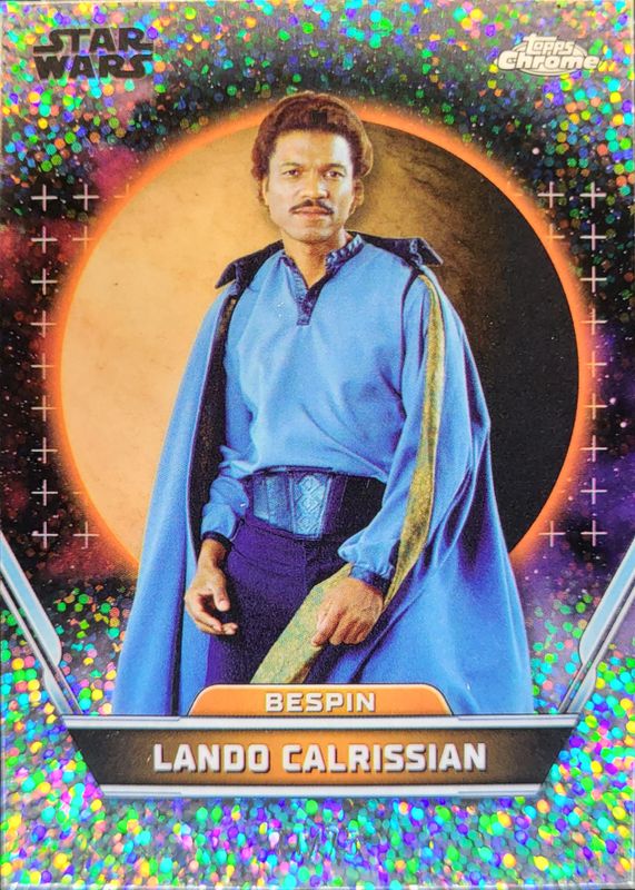 The Lando Calrissian 2024 Topps Star Wars Hyperspace #75 Galactic Dust Refractor /75 card is 1 of 36 Lando Calrissian's card variations in the 2024 Topps Star Wars Hyperspace set being tracked by Sports Card Investor, including #75 Base, #75 Nebulae Refractor, #A-BW Nebulae Refractor, #75 Refractor, and #75 Aqua Refractor /199.