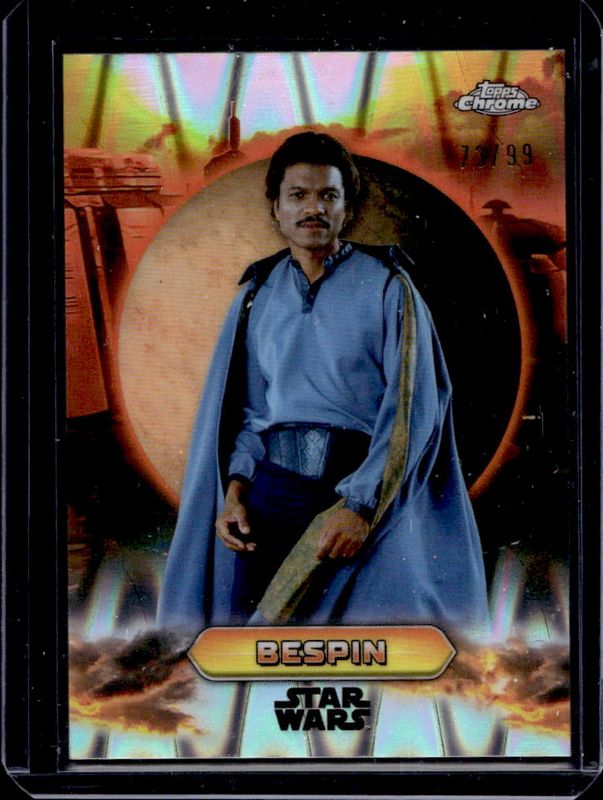 The Lando Calrissian 2024 Topps Star Wars Hyperspace #BPV-75 Planetary Variations /99 card is 1 of 36 Lando Calrissian's card variations in the 2024 Topps Star Wars Hyperspace set being tracked by Sports Card Investor, including #75 Base, #75 Nebulae Refractor, #A-BW Nebulae Refractor, #75 Refractor, and #75 Aqua Refractor /199.