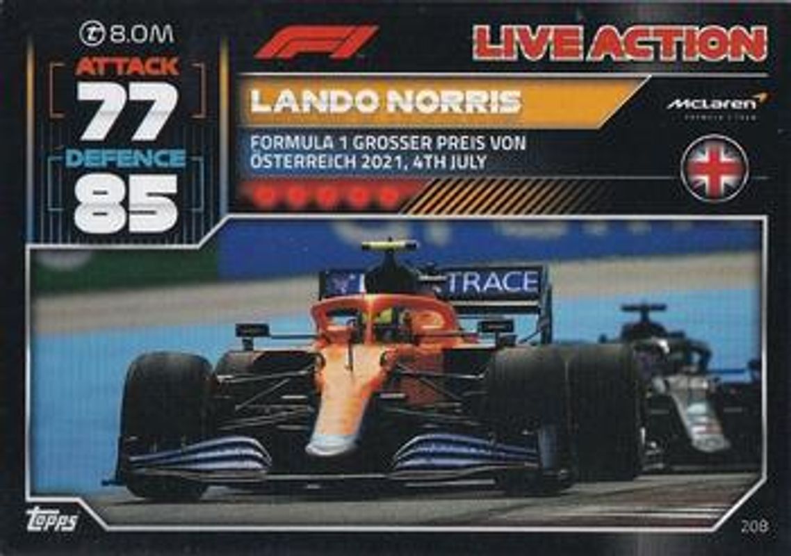 Lando Norris 2022 Topps Turbo Attax Formula 1 #208 Base RAW Price Guide