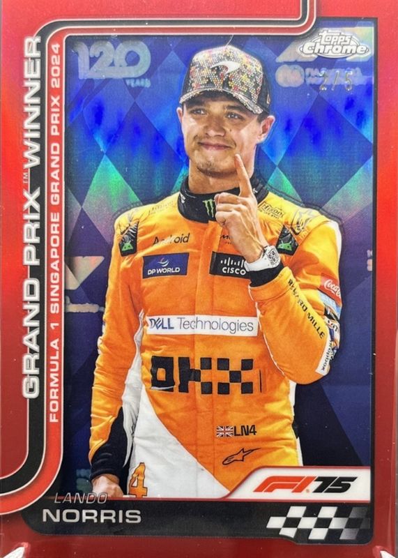 Lando Norris 2025 Topps Chrome Formula 1 #5 Red Refractor /5 RAW Price Guide