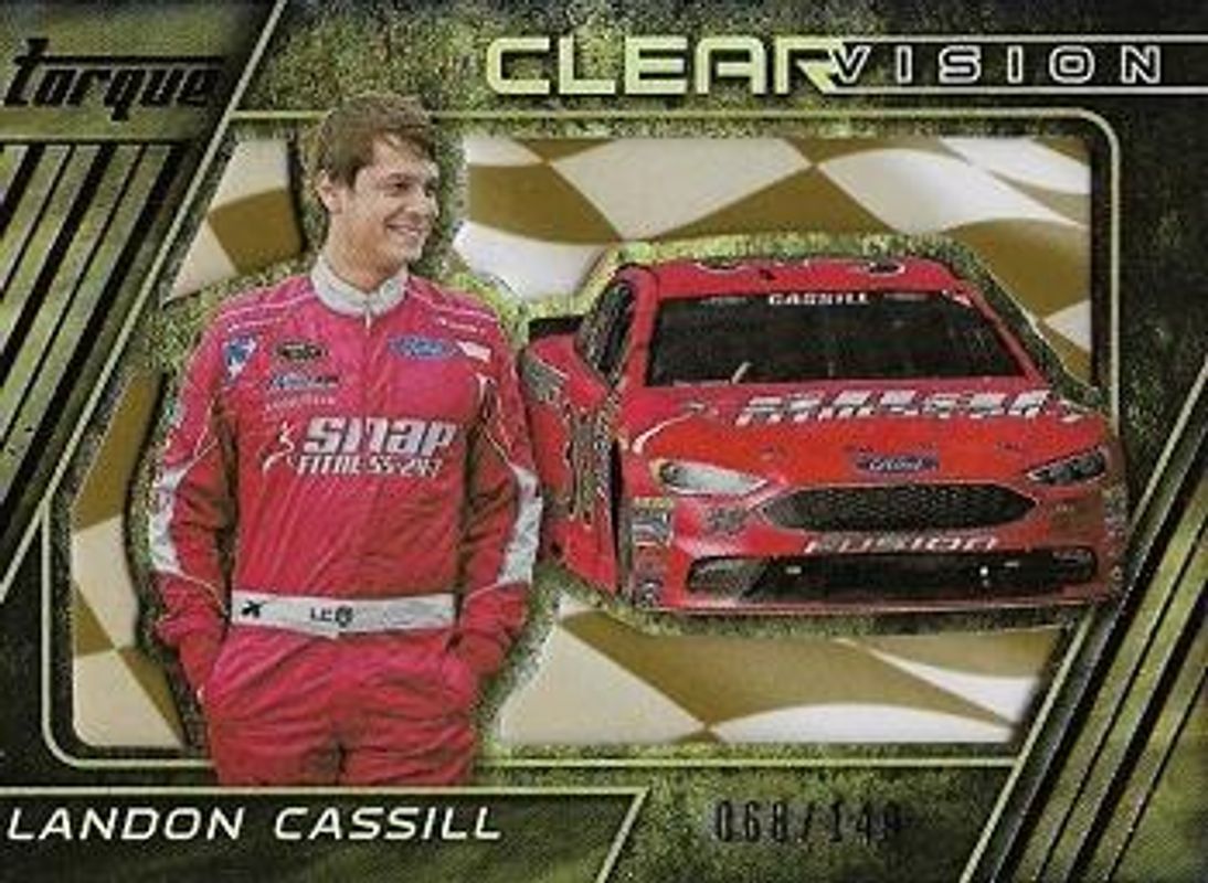 The Landon Cassill 2016 Torque NASCAR #23 Clear Vision Gold /149 card is 1 of 38 Landon Cassill's card variations in the 2016 Torque NASCAR set being tracked by Sports Card Investor, including Base, Gold, Blue /125, Red /99, and Artist Proof /50.
