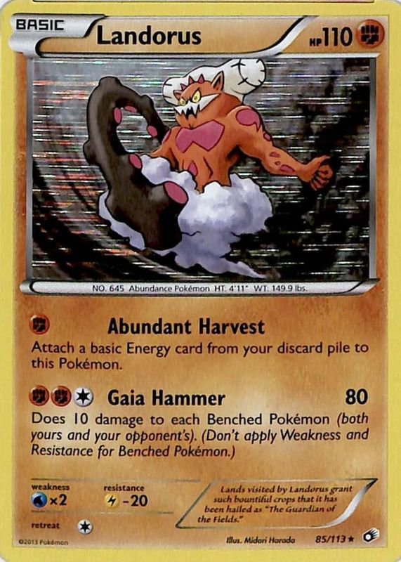 Landorus 2013 Black & White: Legendary Treasures #085/113 Holo RAW TCG (LIGHTLY PLAYED) Price Guide