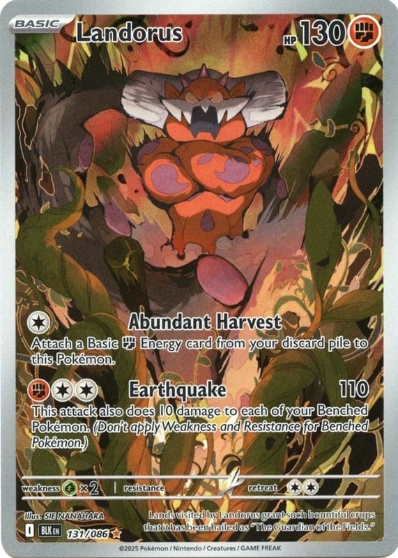 The Landorus 2025 Scarlet & Violet: Black Bolt #131/086 Illustration Rare card in Raw TCG (Near Mint) condition has moved up $1.00 (+5.5%) in the last 30 days and was last sold for $19.25 .