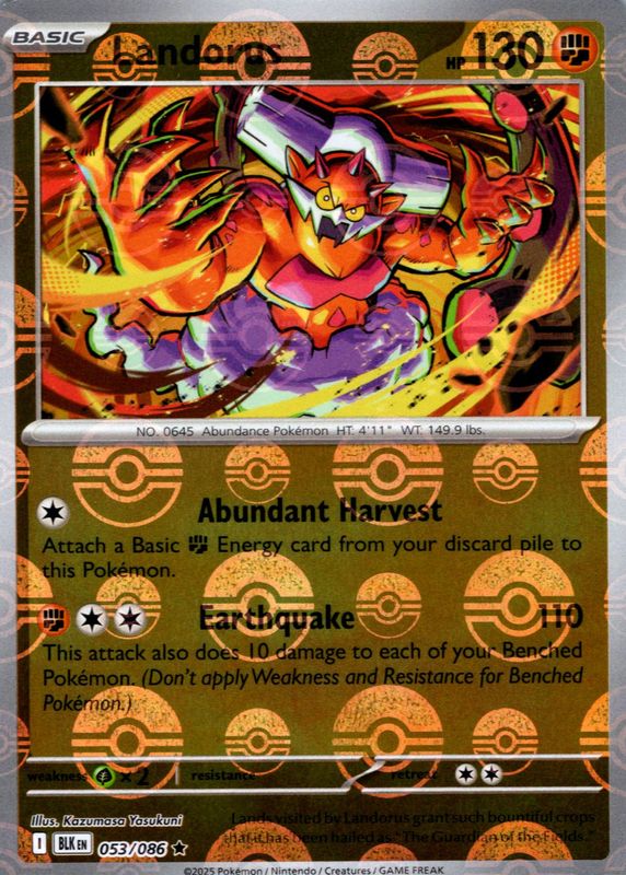 Landorus 2025 Scarlet & Violet: Black Bolt #053/086 Poke Ball Reverse Holo RAW TCG (LIGHTLY PLAYED) Price Guide
