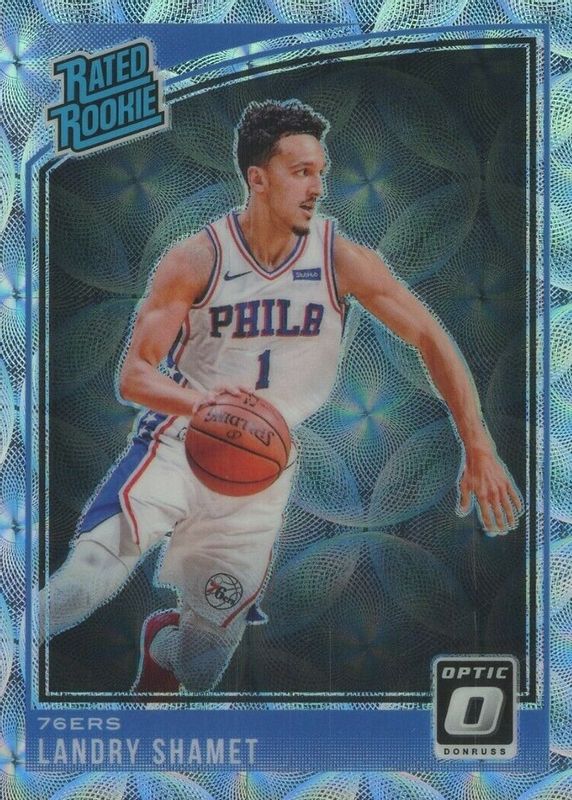 This card is 1 of 29 Landry Shamet's card variations in the 2018 Optic set being tracked by Sports Card Investor, including Base, Blue Velocity, Checkerboard, Choice, and Fast Break.