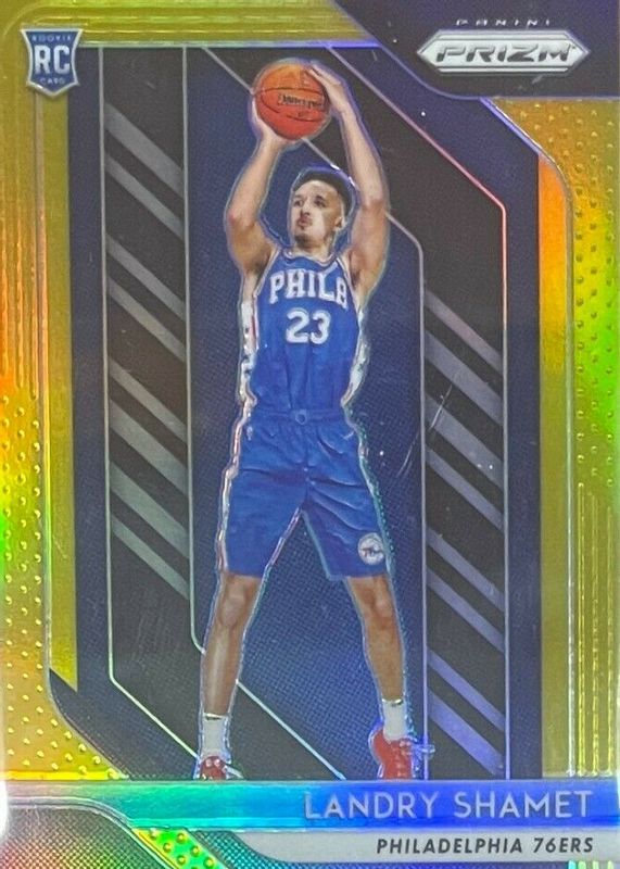 The Landry Shamet 2018 Prizm #199 Gold /10 Rookie card in Raw condition has not changed in price in the last 30 days and was last sold for $65.87 .