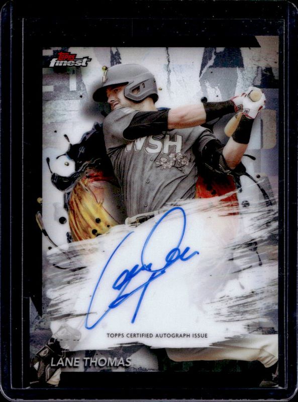 The Lane Thomas 2025 Topps #BSA-LT Baseball Stars Autographs card is 1 of 75 Lane Thomas' card variations in the 2025 Topps set being tracked by Sports Card Investor, including Base, Aqua Holo Foil, Diamante Foil, Holo Foil, and Pink Diamante Foil.