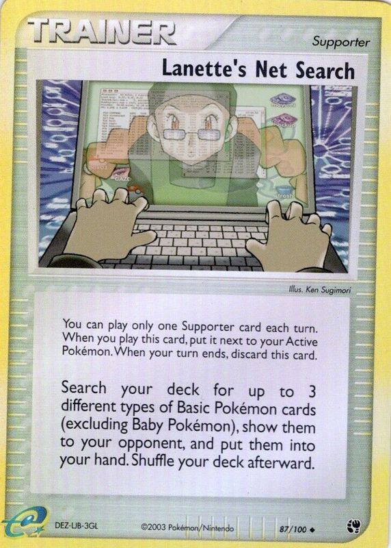 2003 Pokemon TCG EX Sandstorm Lanette's Net Search Reverse Holo - 87/100 - NM