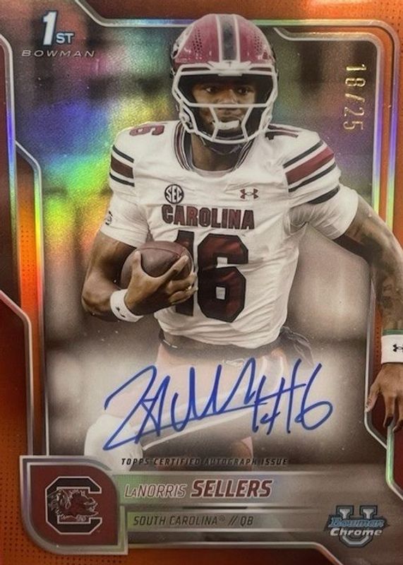 2025 Bowman U Chrome Football LaNorris Sellers BCA-LNS 1st Auto True Orange /25