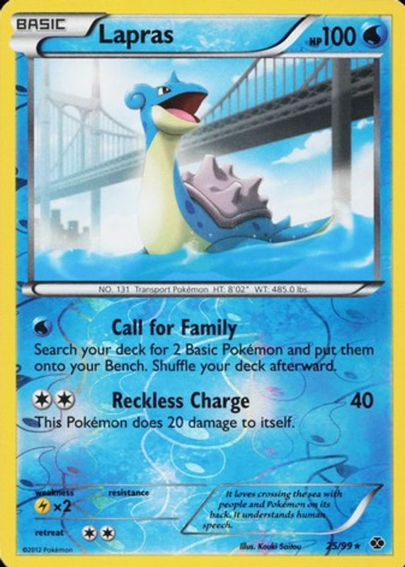 Lapras 2012 Black & White: Next Destinies #25/99 Reverse Holo RAW TCG (LIGHTLY PLAYED) Price Guide