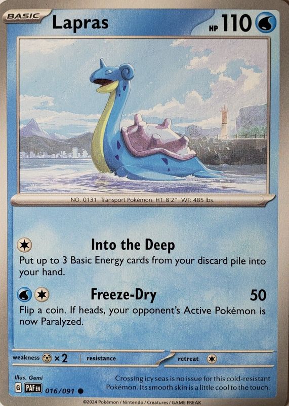 Lapras 2024 Scarlet & Violet: Paldean Fates #016/091 Base RAW TCG (NEAR MINT) Price Guide
