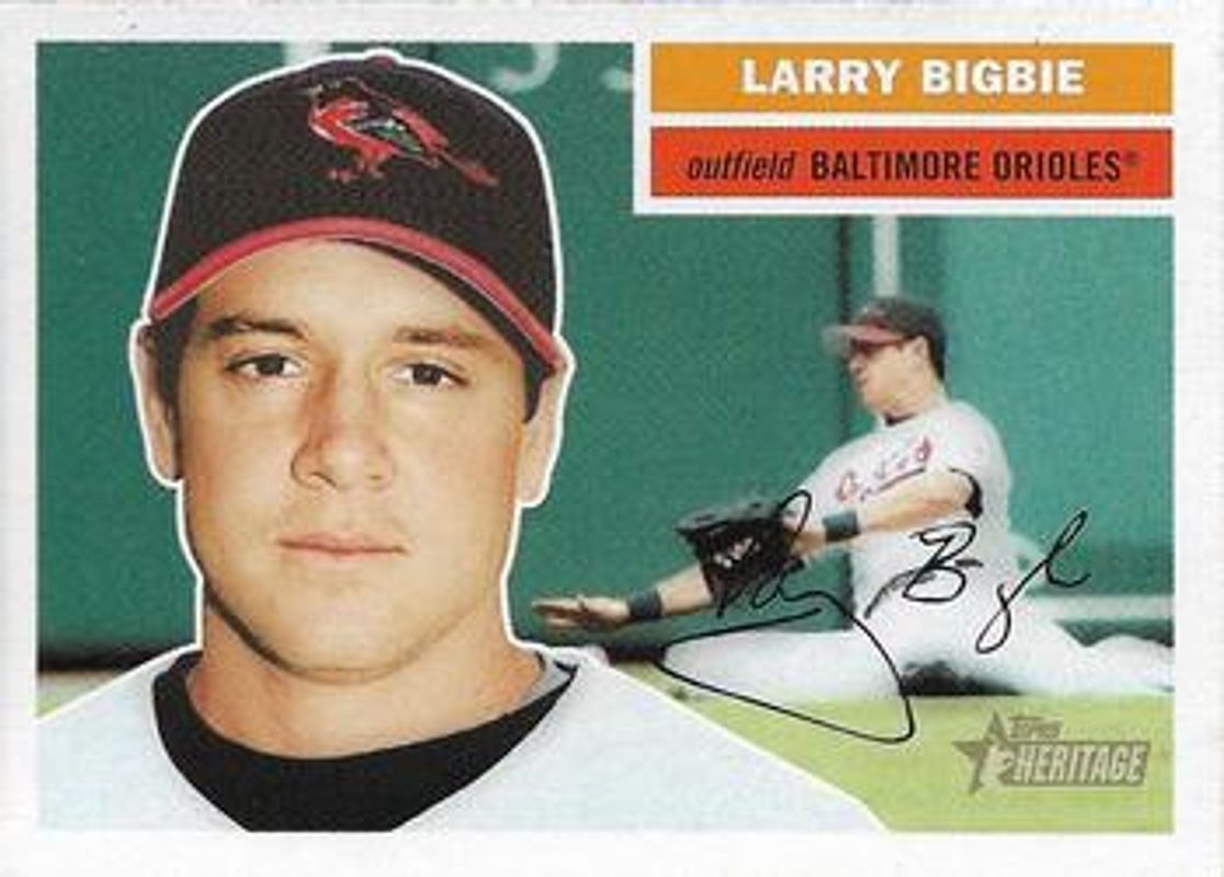 The Larry Bigbie 2005 Topps Heritage #94b Base card is 1 of 2 Larry Bigbie's card variations in the 2005 Topps Heritage set being tracked by Sports Card Investor, including Base.