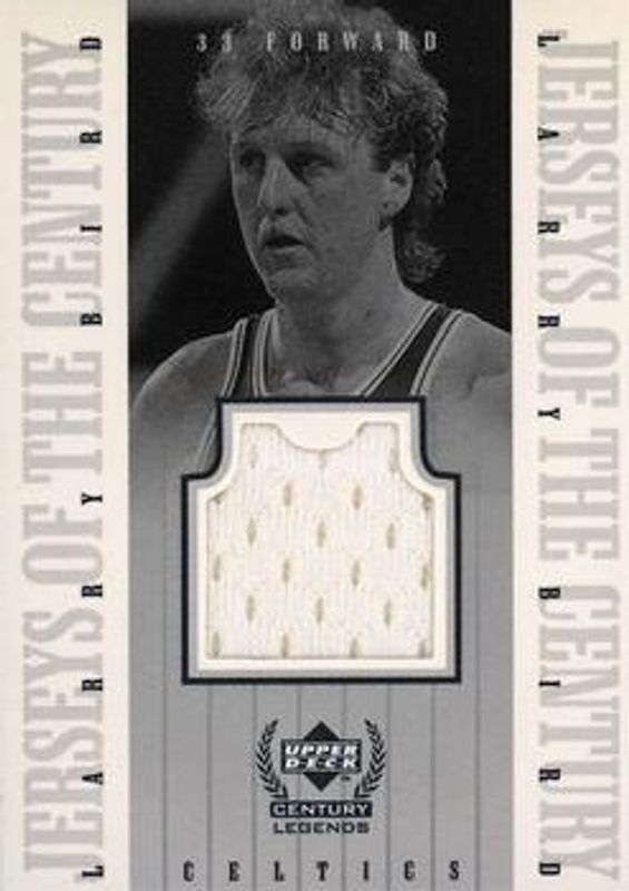 The Larry Bird 1998 Upper Deck Century Legends #LB Jerseys of the Century /6 card is 1 of 6 Larry Bird's card variations in the 1998 Upper Deck Century Legends set being tracked by Sports Card Investor, including Base, Century Collection /100, All Century Team, Epic Signatures, and Epic Signatures Century /100.
