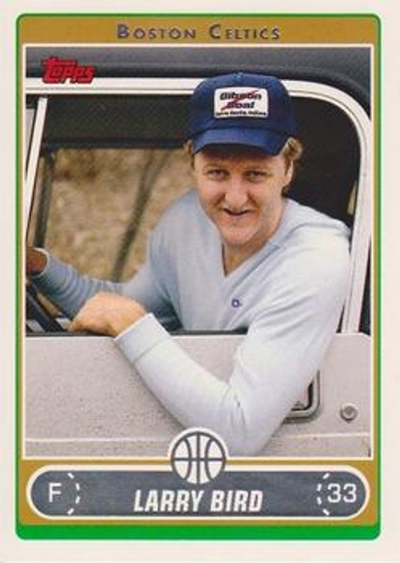 The Larry Bird 2006 Topps #33b Base card is 1 of 116 Larry Bird's card variations in the 2006 Topps set being tracked by Sports Card Investor, including #33aa Base, #33ab Base, #33ac Base, #33ad Base, and #33ae Base.