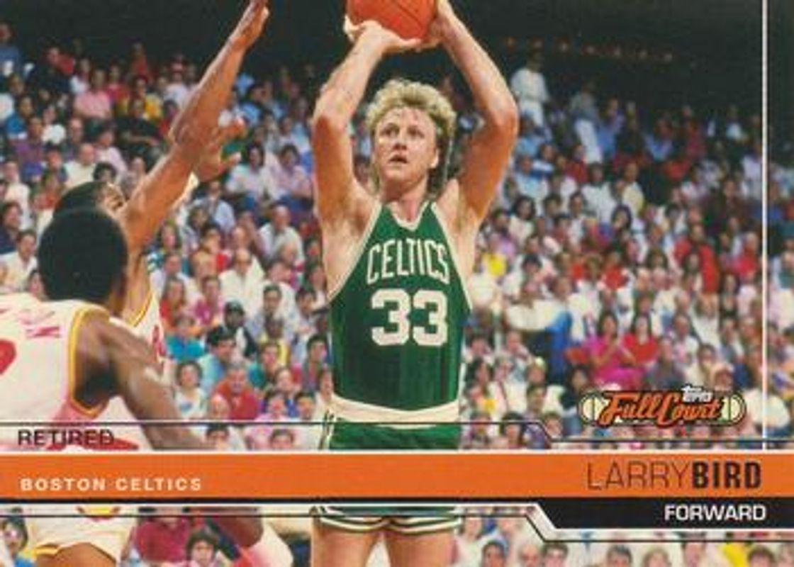 The Larry Bird 2006 Topps Full Court #97 Base /999 card is 1 of 12 Larry Bird's card variations in the 2006 Topps Full Court set being tracked by Sports Card Investor, including Photographer's Proof /1999, First Day Issue /429, Photographer's Proof Gold /199, Framed Press Plates Black /1, and Framed Press Plates Cyan /1.
