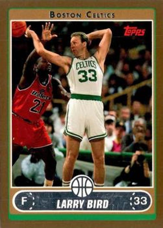 The Larry Bird 2006 Topps #33ad Gold /500 card is 1 of 116 Larry Bird's card variations in the 2006 Topps set being tracked by Sports Card Investor, including #33aa Base, #33ab Base, #33ac Base, #33ad Base, and #33ae Base.