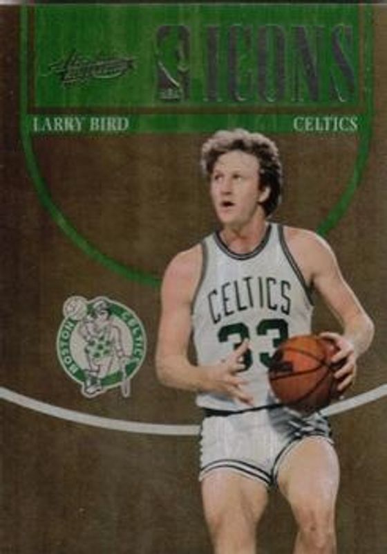 The Larry Bird 2010 Absolute Memorabilia #1 NBA Icons /399 card is 1 of 16 Larry Bird's card variations in the 2010 Absolute Memorabilia set being tracked by Sports Card Investor, including Panini All Stars Rack Pack, Absolute Heroes /399, Absolute Heroes Spectrum /100, NBA Icons Spectrum /100, and NBA Icons - Materials /49.