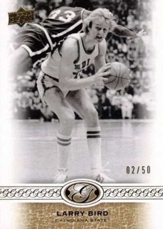 The Larry Bird 2011 Upper Deck All Time Greats #121 Base /50 card is 1 of 63 Larry Bird's card variations in the 2011 Upper Deck All Time Greats set being tracked by Sports Card Investor, including #109 Base /50, #110 Base /50, #111 Base /50, #112 Base /50, and #113 Base /50.