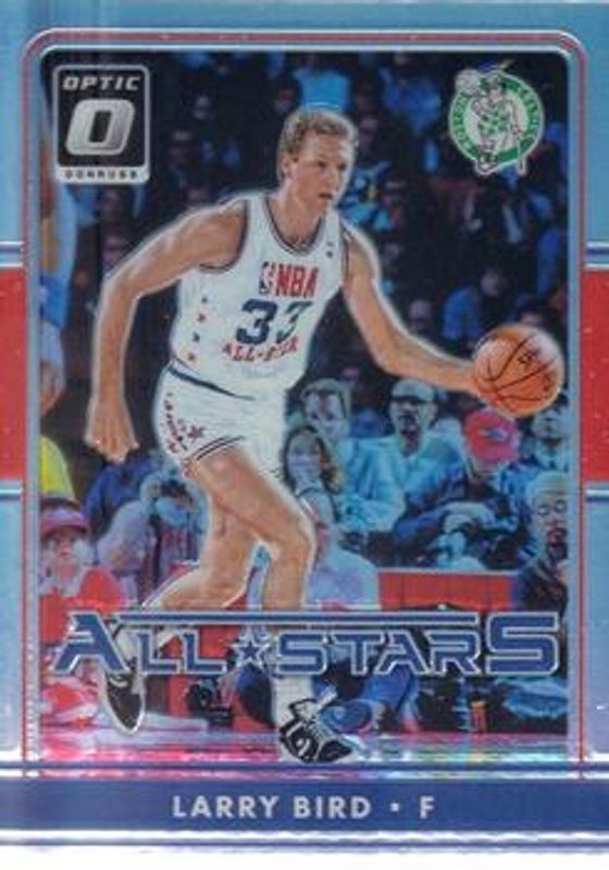 The Larry Bird 2016 Optic #2 All Stars - Holo card is 1 of 25 Larry Bird's card variations in the 2016 Optic set being tracked by Sports Card Investor, including All Stars, Hall Kings, Hall Kings - Holo, Hall Kings - Purple, and The Champ is Here.