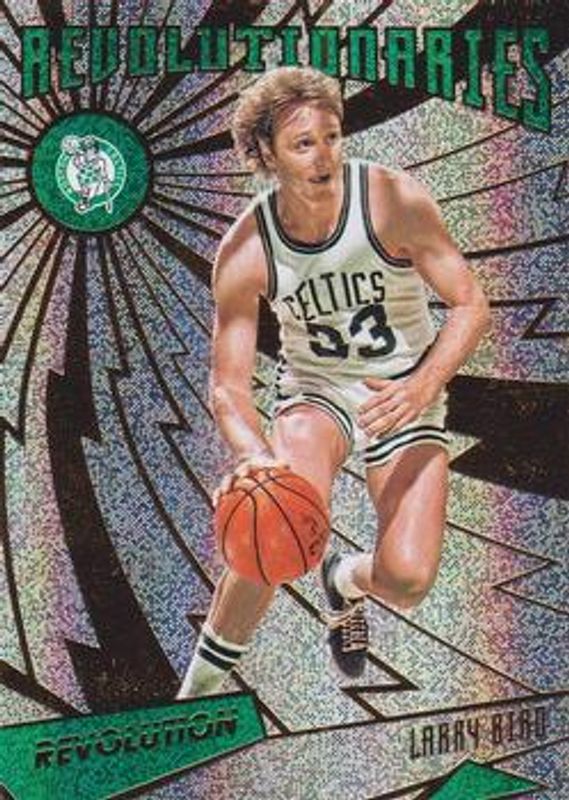 The Larry Bird 2016 Revolution #7 Revolutionaries card is 1 of 6 Larry Bird's card variations in the 2016 Revolution set being tracked by Sports Card Investor, including Autographs, Revolutionaries - Galactic, Revolutionaries - Cosmic /100, Autographs - Futura /25, and Autographs - Kaleido /1.